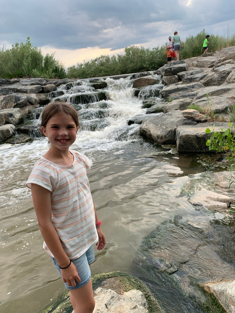 We finally arrived at the Yehl’s house around 4:30p. It had been 5 years since we had last seen them. The kids wasted no time getting to the trampoline and pool in their backyard. After dinner, we walked, biked and scootered to a nearby (man made) waterfall.